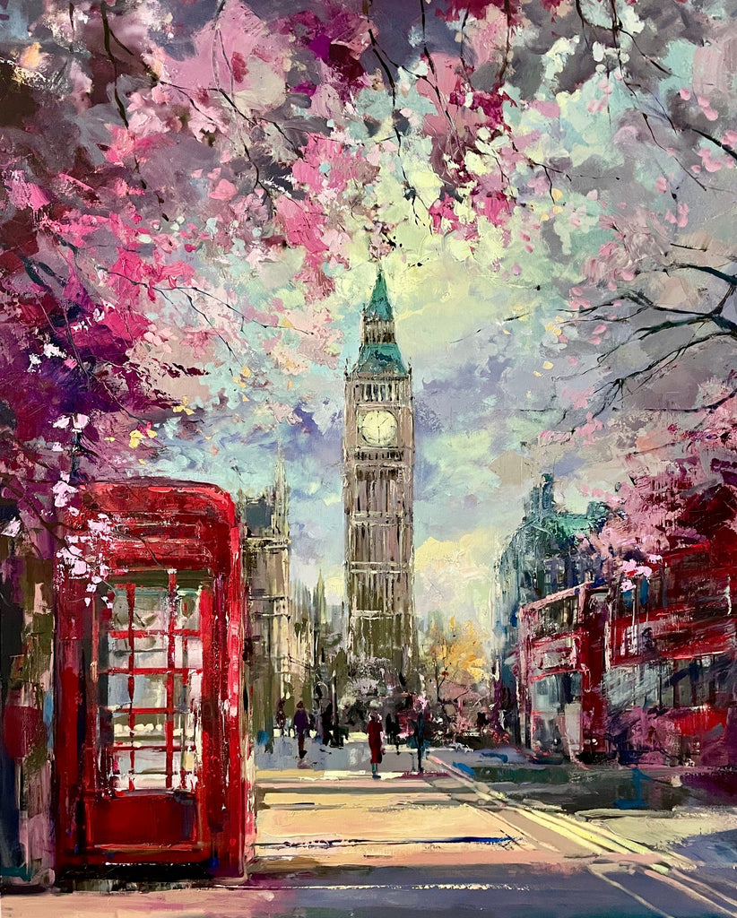 In this oil painting, I poured my passion into capturing the vibrant spirit of London through an impressionistic lens. The bursting cherry blossoms frame Big Ben, creating a dance of light, color, and life. I wanted to evoke a feeling of hopeful energy and timeless charm, bringing warmth and a sense of wonder that will brighten any space it graces.